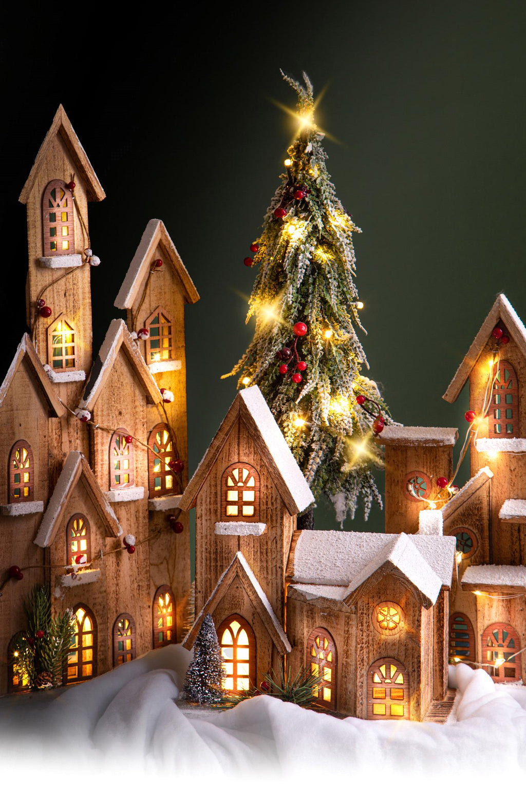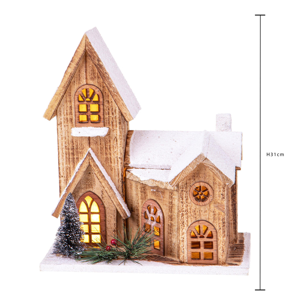 Kleines Haus mit Schnee mit 10 Leds 31 cm aus Holz und Kunststoff
