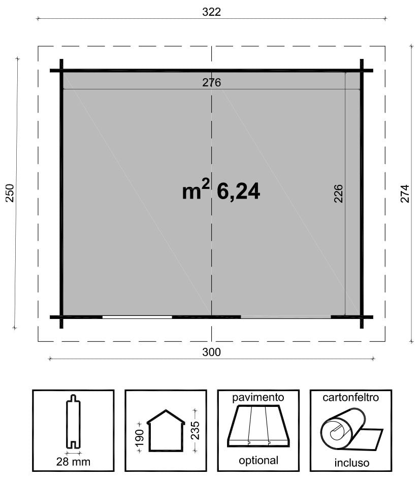 Malaga Holz Gartenhaus 1 Tür 1 Fenster 300x250 cm