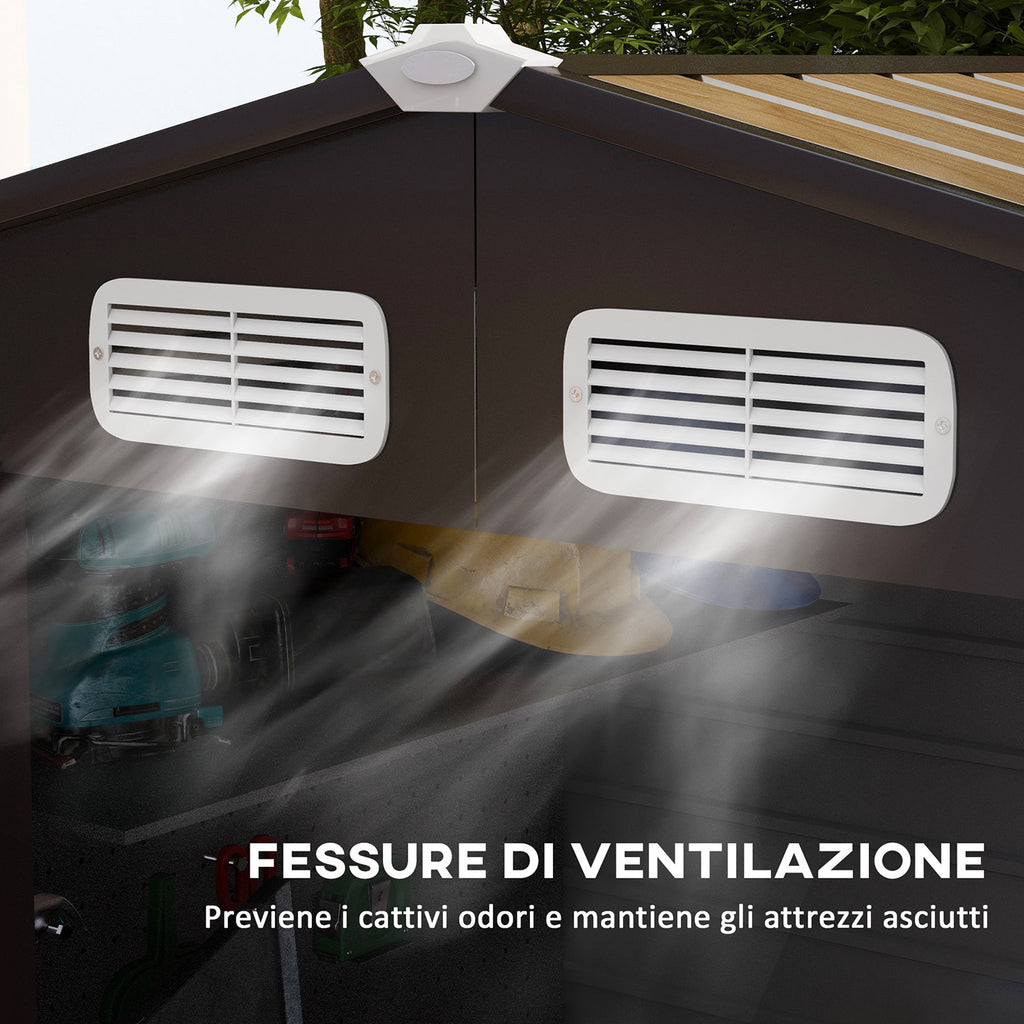 - VENTILAZIONE OTTIMALE: Le 2 prese d'aria superiori assicurano un'ottima ventilazione all'interno del capanno da giardino, per mantenere tutto asciutto
