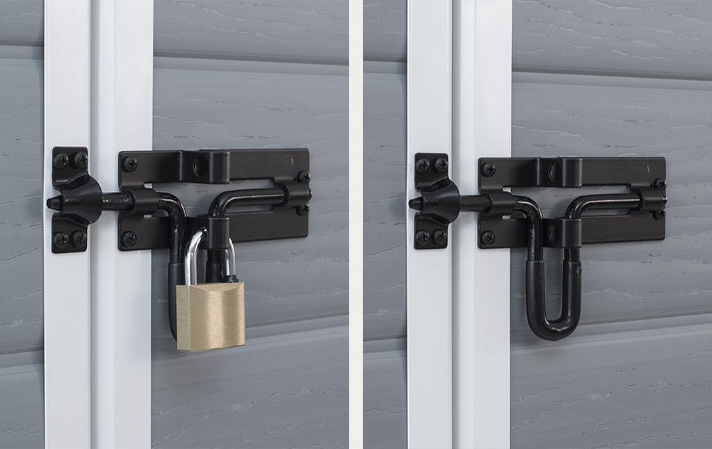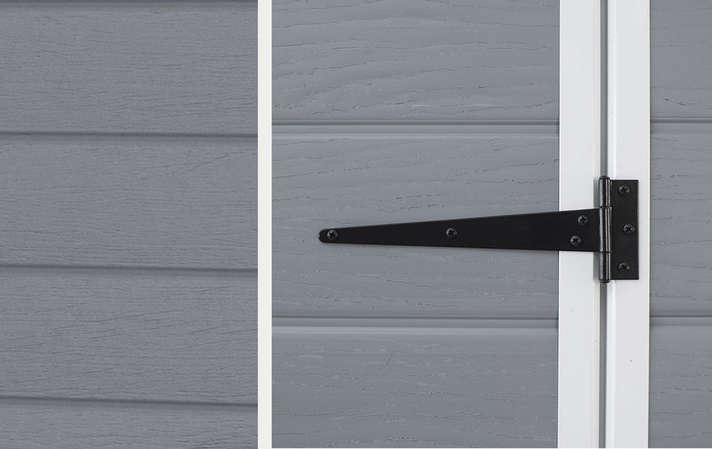 Mit seiner Kompaktheit und Tiefe bietet Manor 4x6 auch auf engstem Raum Schutz. Er verfügt über eine wetterbeständige doppelwandige Paneelkonstruktion, einen Boden, der den Inhalt des Schuppens trocken und sauber hält, Belüftungslöcher und einen abschließbaren Riegel.