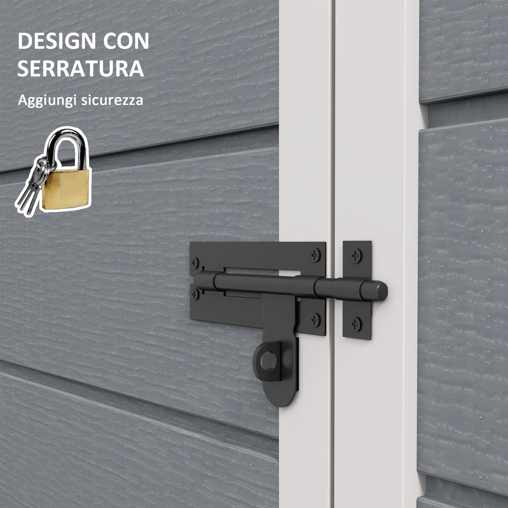 - CON SERRATURA: Le porte con serratura di questo capanno porta attrezzi contengono in modo sicuro utensili elettrici, biciclette o attrezzi, proteggendoli dagli intrusi e impedendo che mettano in pericolo bambini e animali domestici. Serratura e chiavi sono incluse nella confezione