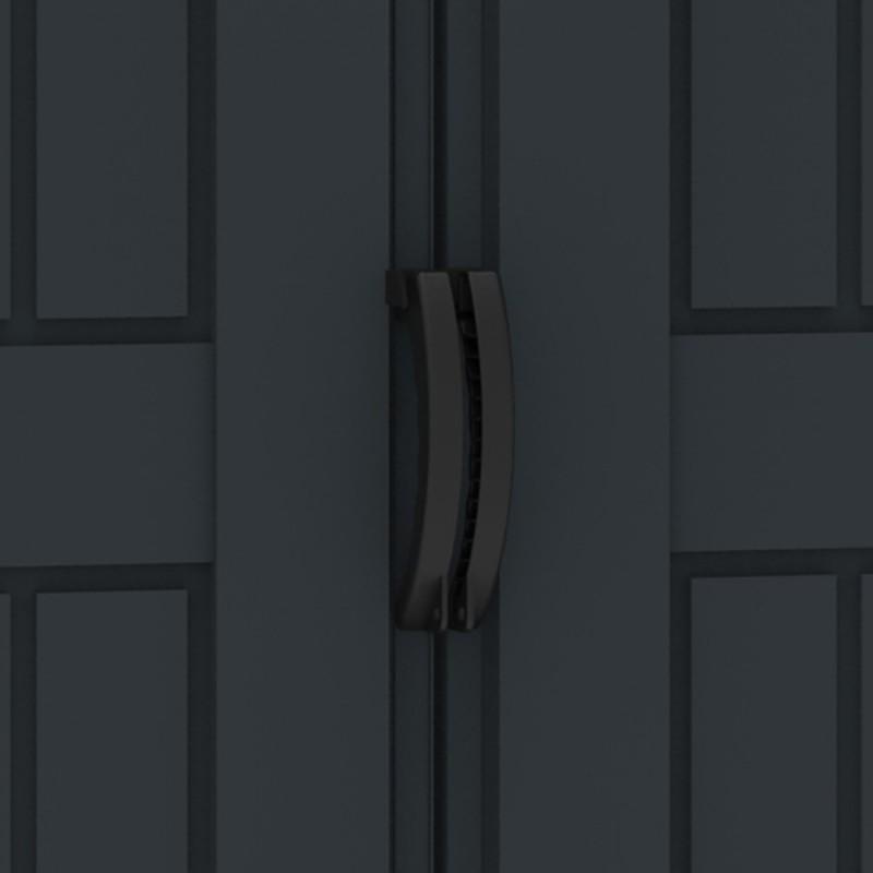 Dank des Vinylharzes, das gegen verschiedene klimatische Bedingungen unempfindlich ist, müssen sie nicht behandelt werden, sie rosten oder verrotten nicht. Sie werden von hochbelastbaren Innenträgern aus verzinktem Stahl getragen. Die Seitenpfosten sind mit einem soliden Metallrahmen verstärkt, der den Schuppen Stabilität verleiht und die Montage von Regalen oder das Aufhängen von Gartengeräten ermöglicht. Abschließbare Griffe (Schloss nicht im Lieferumfang enthalten) sichern den Inhalt und das doppelte Belüftungssystem mit gerilltem Gitter am Giebel erhöht den Luftstrom im Inneren. Alle Wände sind ordentlich im Karton verpackt und das Haus ist dank der ausführlichen Aufbauanleitung einfach aufzubauen.