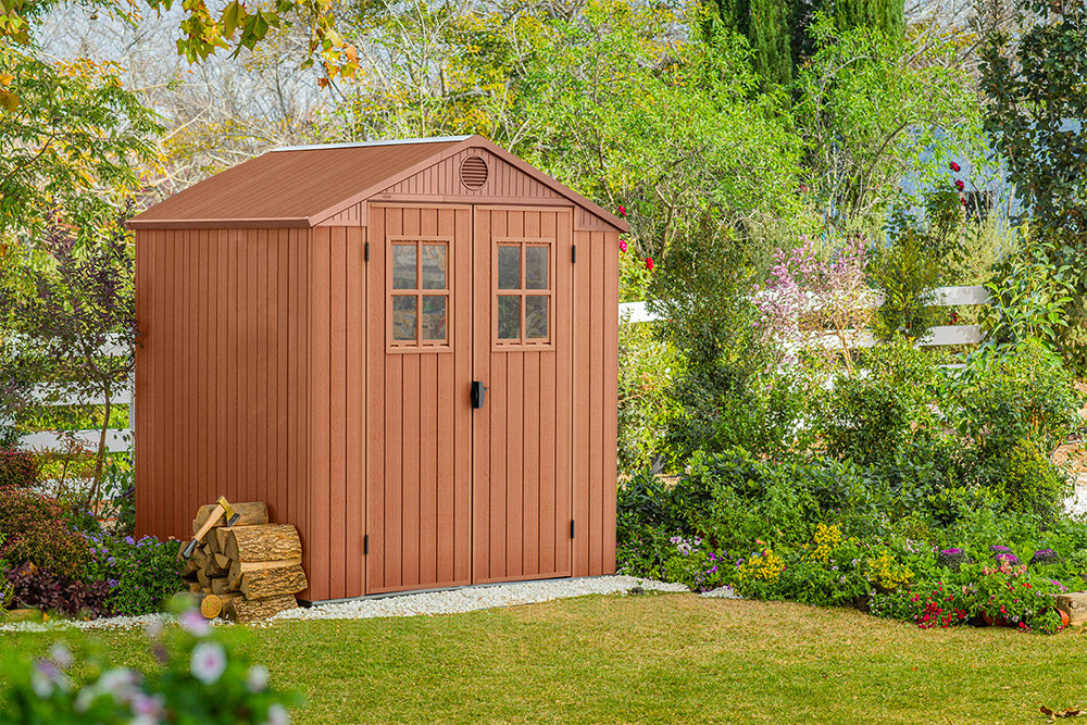 Robusta, concepita per durare nel tempo, compatta, illuminata naturalmente grazie alla doppia finestra frontale, dotata di fori di ventilazione e di porta a due ante per facilitare l'accesso agli oggetti di più grandi dimensioni, Darwin 6x6 è la casetta perfetta per ogni evenienza. Non richiede manutenzione ed è concepita per durare nel tempo grazie all'utilizzo dei pannelli EVOTECH+™, dotati di particolare finitura che riproduce gli effetti del legno naturale.