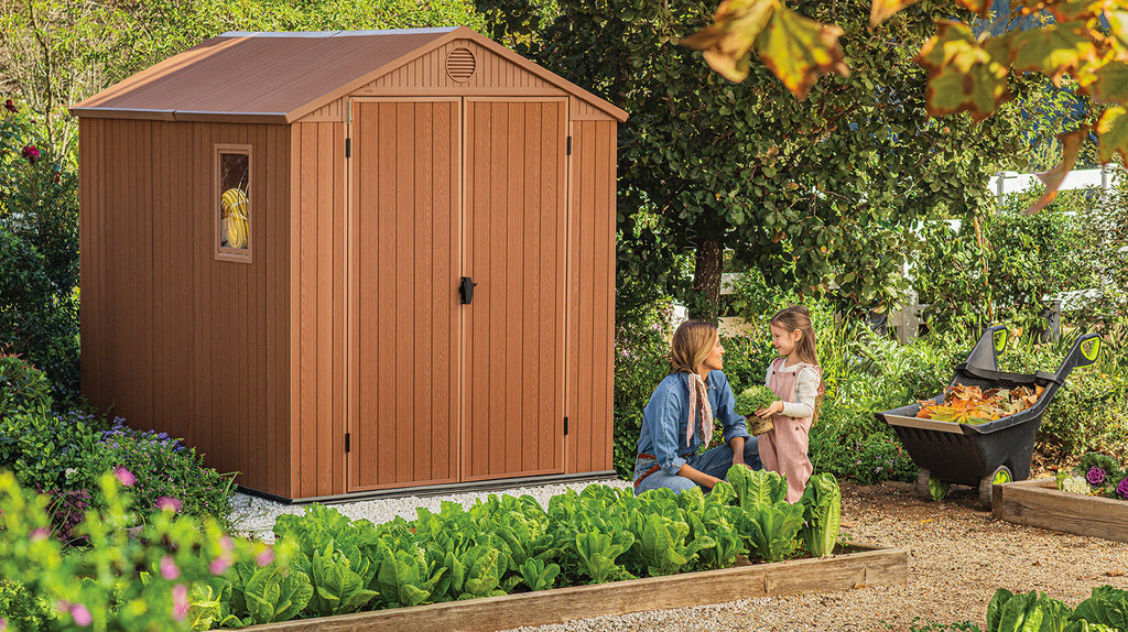 Geräteschuppen 190 x 244 x 221 cm aus Harz Keter Darwin Wood 6 x 8 Braun Holzoptik