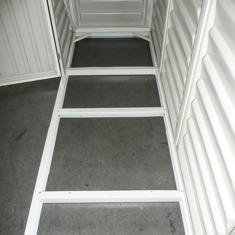 Sie werden mit einem verstärkten Vinylboden-Kit geliefert, sodass Sie kein spezielles Fundament bauen müssen, um Ihren Schuppen aufzustellen. Es kann auch große Gartengeräte oder Maschinen aufnehmen. Die große Doppeltür, breit und hoch, ermöglicht es Ihnen, das Innenvolumen des Hauses voll auszunutzen.