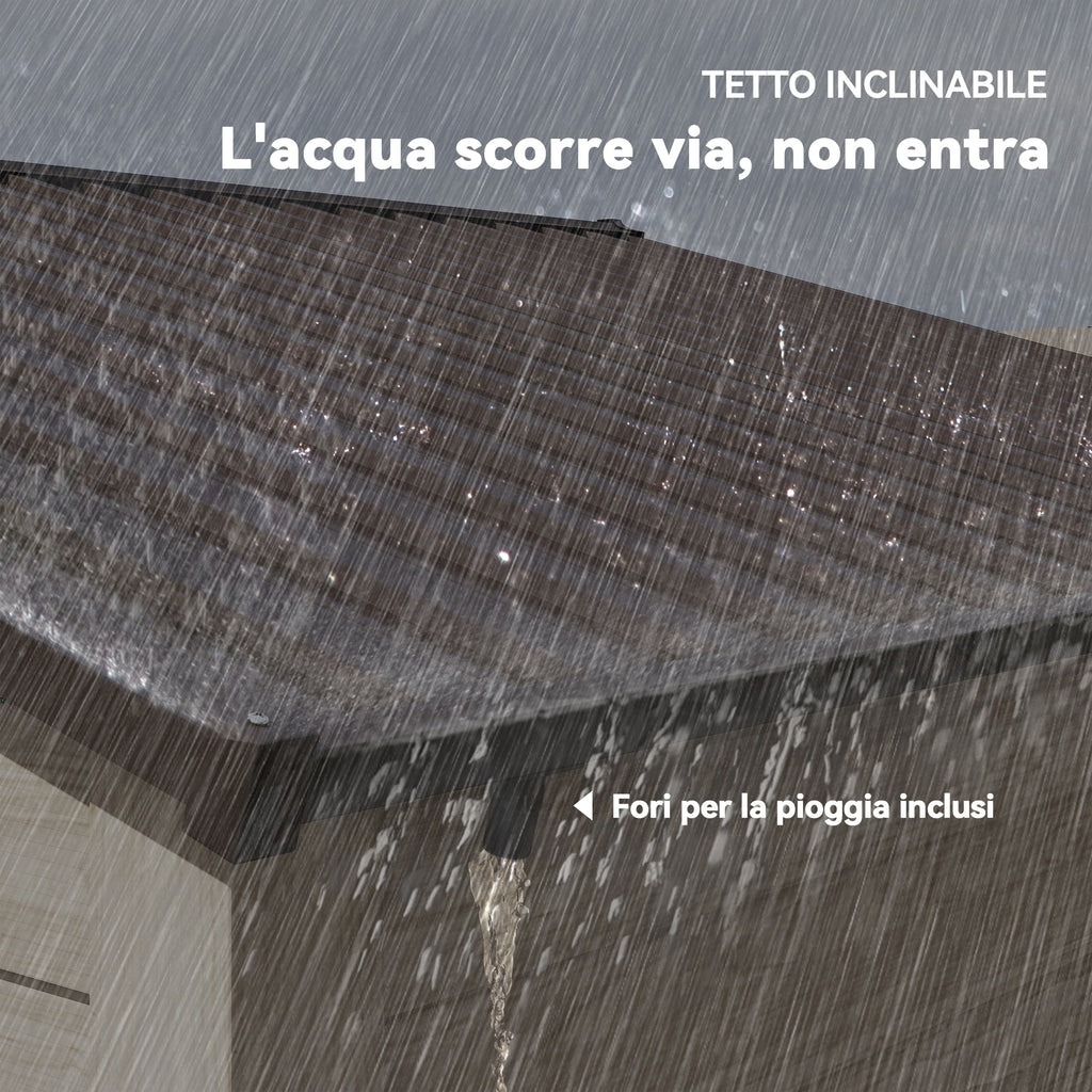 • CASETTA DA GIARDINO CAPIENTE: Il nostro capanno da giardino offre tanto spazio per riporre i tuoi utensili e gli accessori per esterno. La finitura della casetta con effetto legno aggiunge un tocco naturale