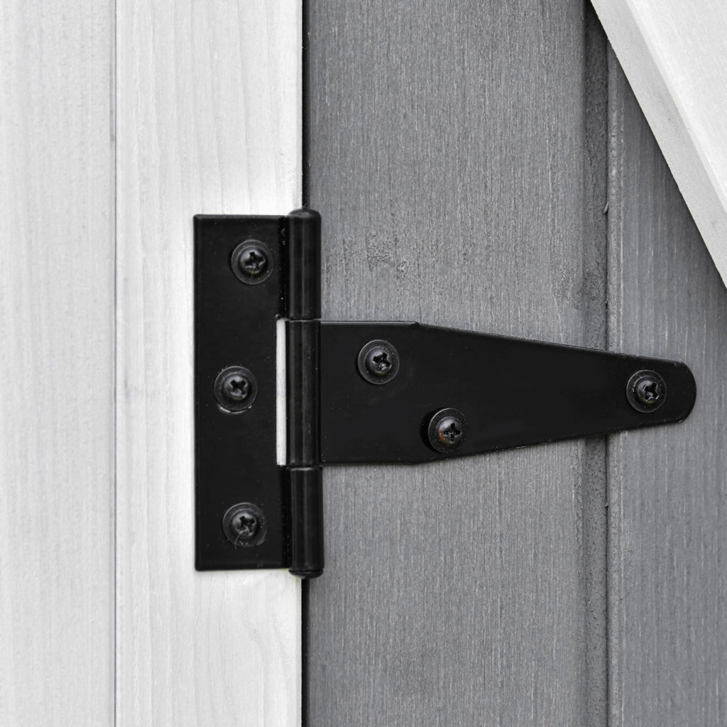 - STABIL: Unser Geräteschuppen hebt sich von den anderen durch die L-förmigen Fußbefestigungen mit Erdnägeln ab, die es ermöglichen, ihn stabil zu halten und dem Wind zu widerstehen. Verstärkte Scharniere an der Tür verlängern die Lebensdauer des Schuppens.