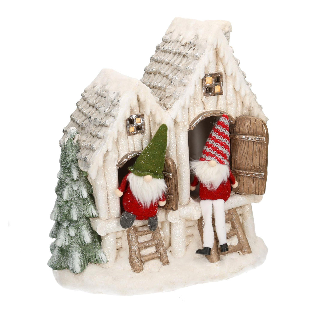 Kleines Haus aus weißem Harz mit LED und Zwergen 40x23xh44 cm