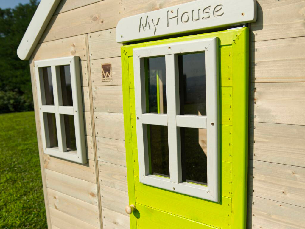 Casetta per Bambini da Esterno su Palafitta 330x350x242h cm con Altalena e Scivolo in Legno Bamby