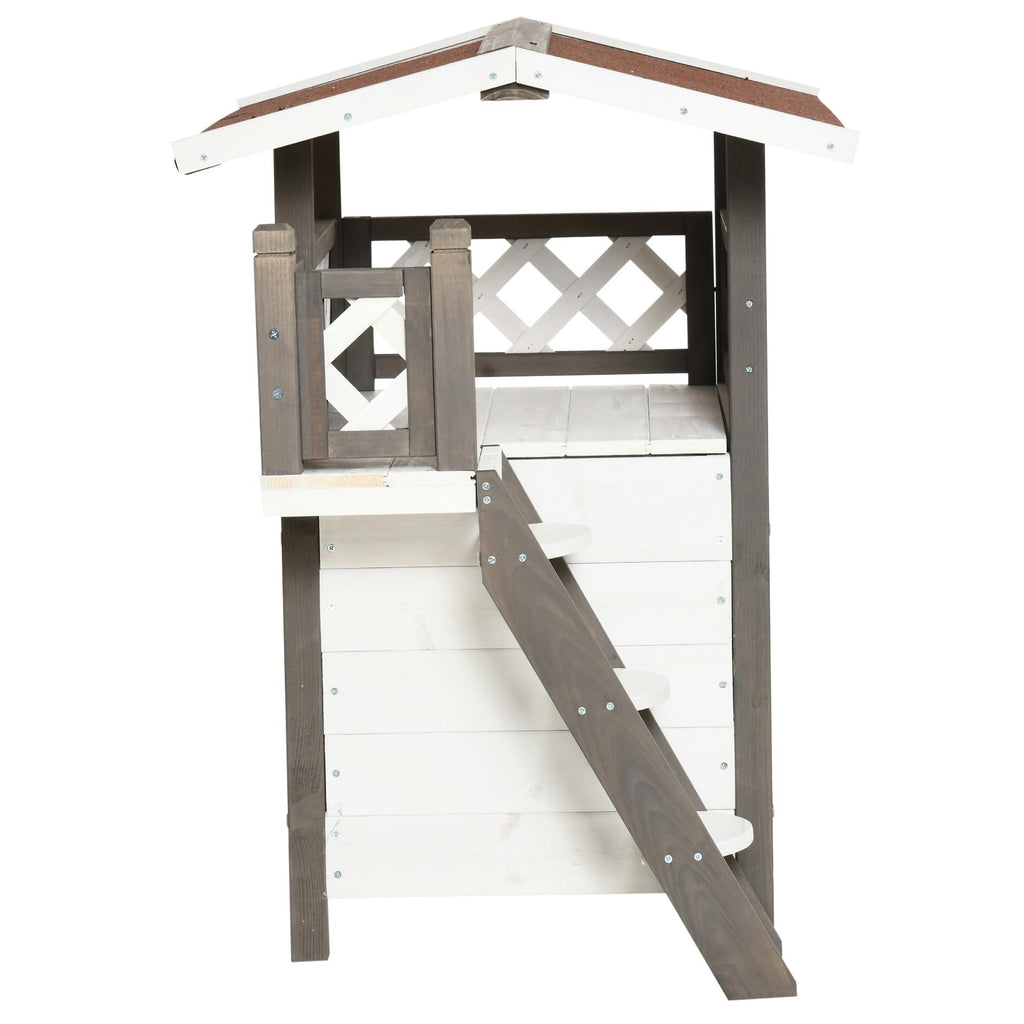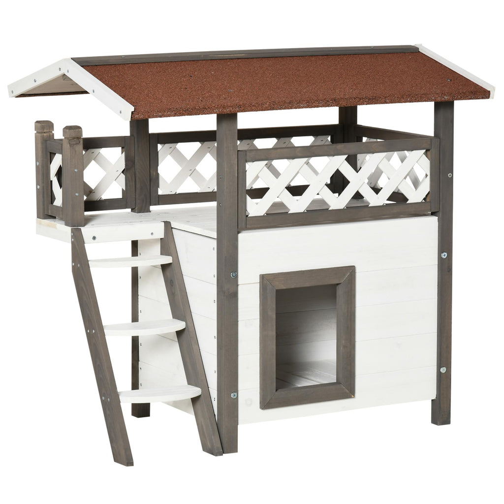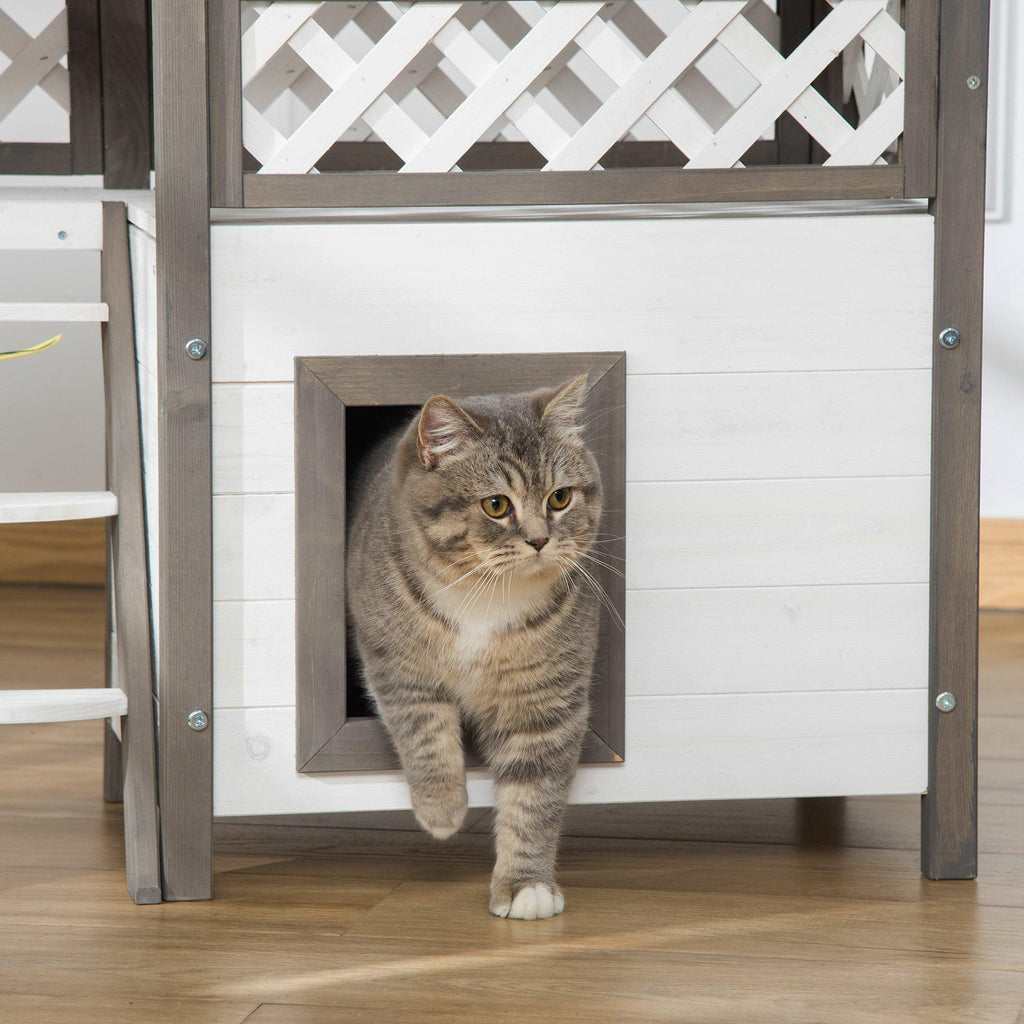 Outdoor-Katzenhaus 77 x 50 x 73 cm in weißem und grauem Holz