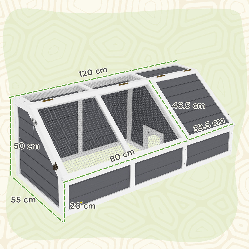 Casetta per Tartarughe di Terra 120x55x50A cm senza Fondo in Legno e Acciaio Grigio e Bianco