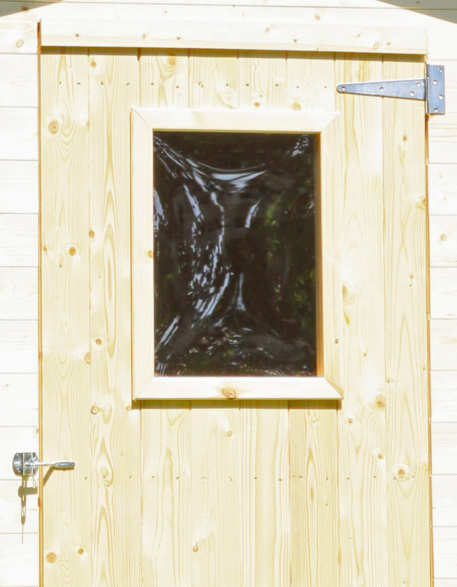 Werkzeugkasten aus Holz 198 x 198 x 228 cm mit Tür und Fenster Ecla Regis Lärche