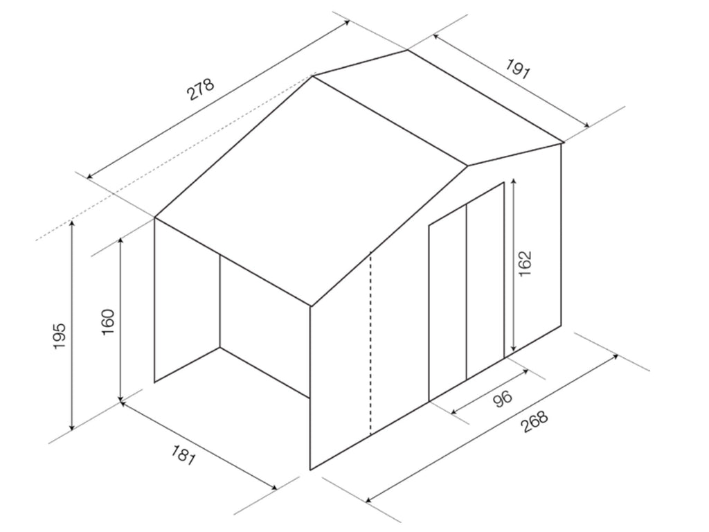 - Außenmaß cm. 278x127x195H