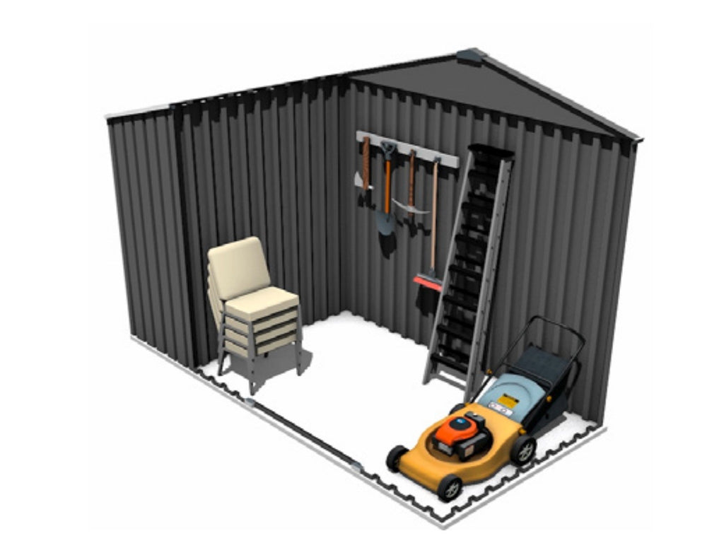 Gartenbox für Werkzeuge mit Holzschuppen 278 x 127 cm aus grauem Metall