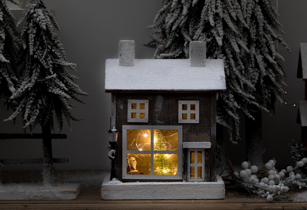 Kleines Haus mit Lichtern H32 cm aus Holz und Kunststoff