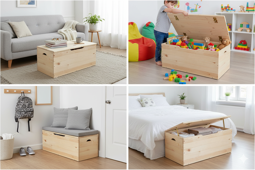 Cassapanca Baule 73x35x33 cm in Legno di Pino Naturale