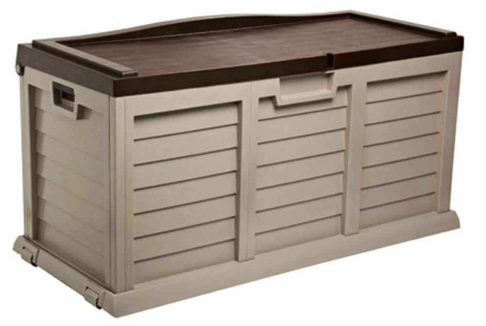 Rechteckige Outdoor-Truhe 140 x 61 x 69 cm aus braunem Bauer-Harz