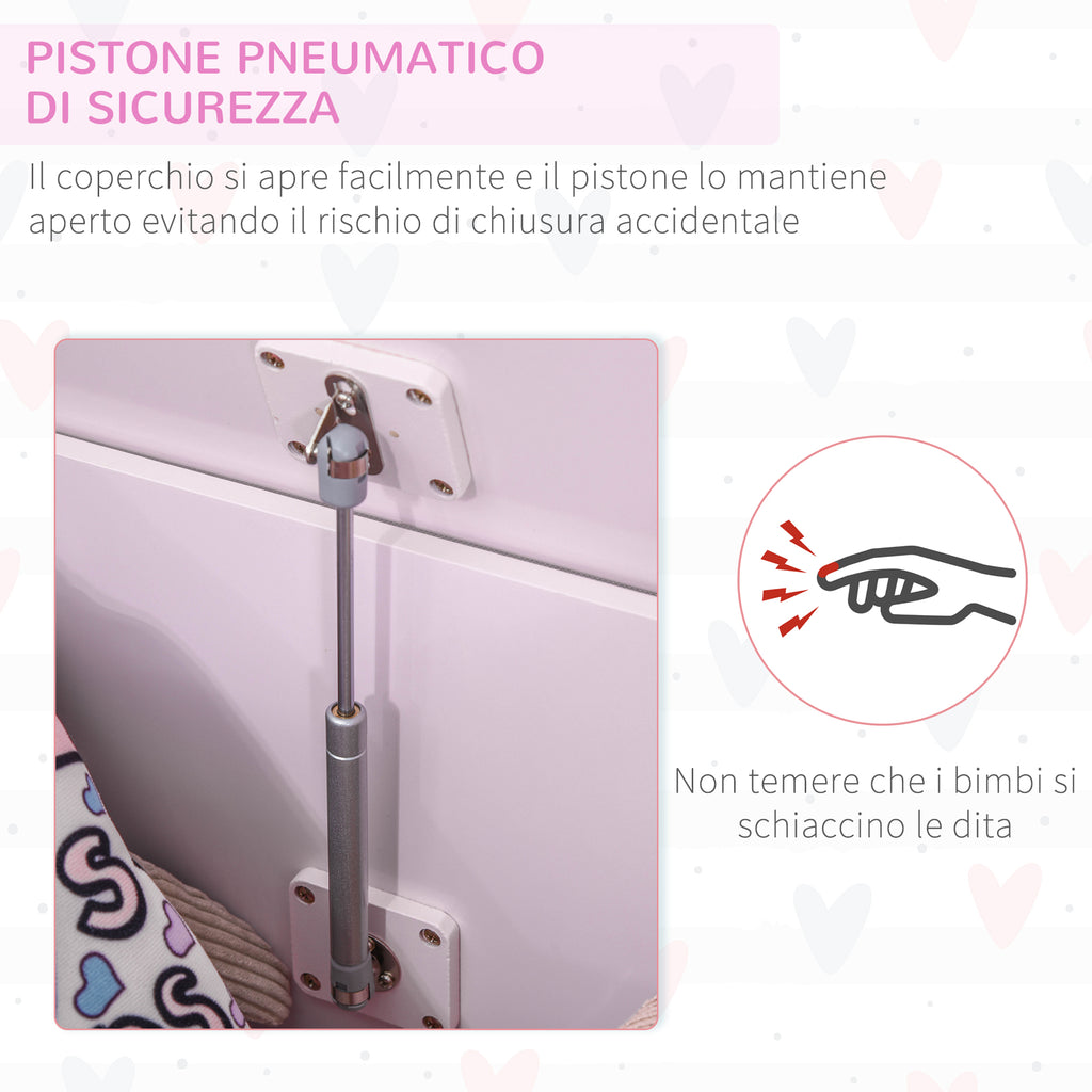 Mit der Kinderkommode müssen Sie die Unordnung im Schlafzimmer nicht mehr fürchten. Diese Aufbewahrungsbank ist perfekt zum Aufbewahren von Spielzeug, Büchern, Kleidung und mehr. Der Deckel lässt sich leicht und sicher öffnen, dank des pneumatischen Kolbens bleibt er stetig geöffnet und das Schließen wird verlangsamt, um die Gefahr des Quetschens der Finger zu vermeiden. Diese widerstandsfähige und elegante Holzbank ist für eine lange Lebensdauer konzipiert und begleitet die Kinder in ihrem Wachstum.