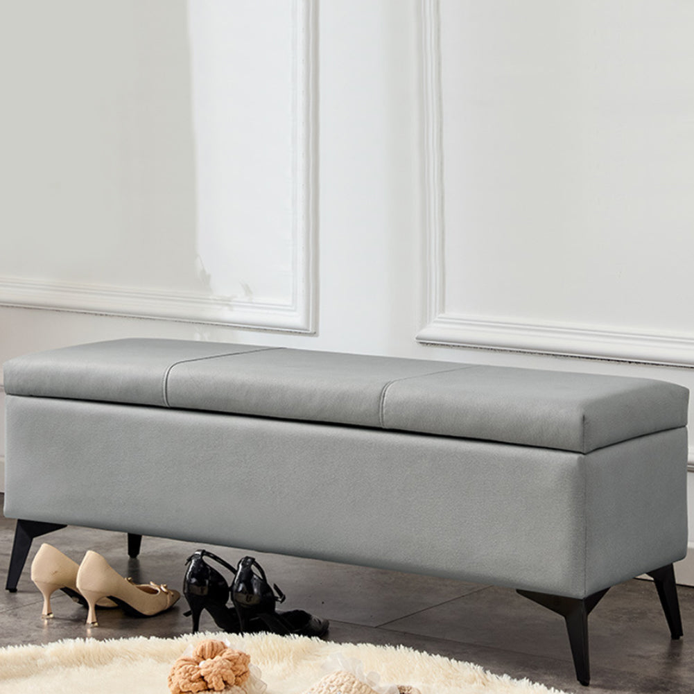 Cassapanca Contenitore Ecopelle Panca Pouf con Piedini in Metallo Grigio Chiaro