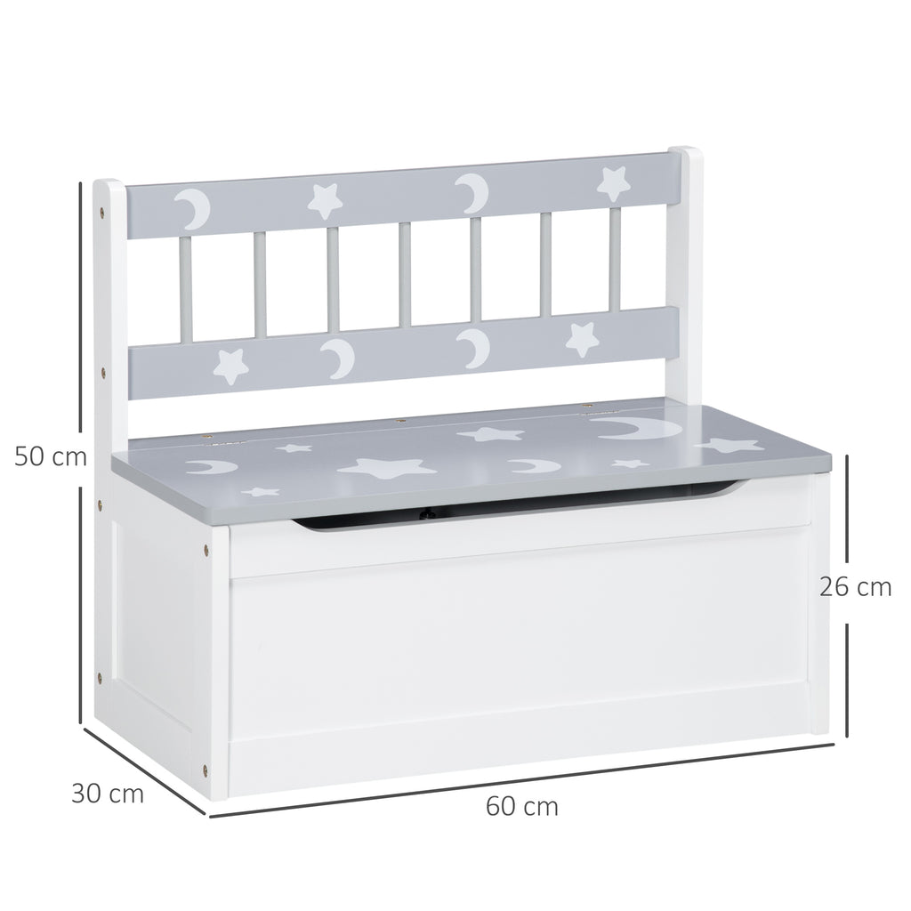 - DIMENSIONI: Dimensioni complessive: 60L x 30P x 50Acm. Dimensioni del vano portaoggetti: 56L x 25P x 19,5A cm. Capacità di peso: 50 kg. Altezza dello schienale: 26 cm. Adatto per bambini di età compresa tra i 18 mesi e i 4 anni