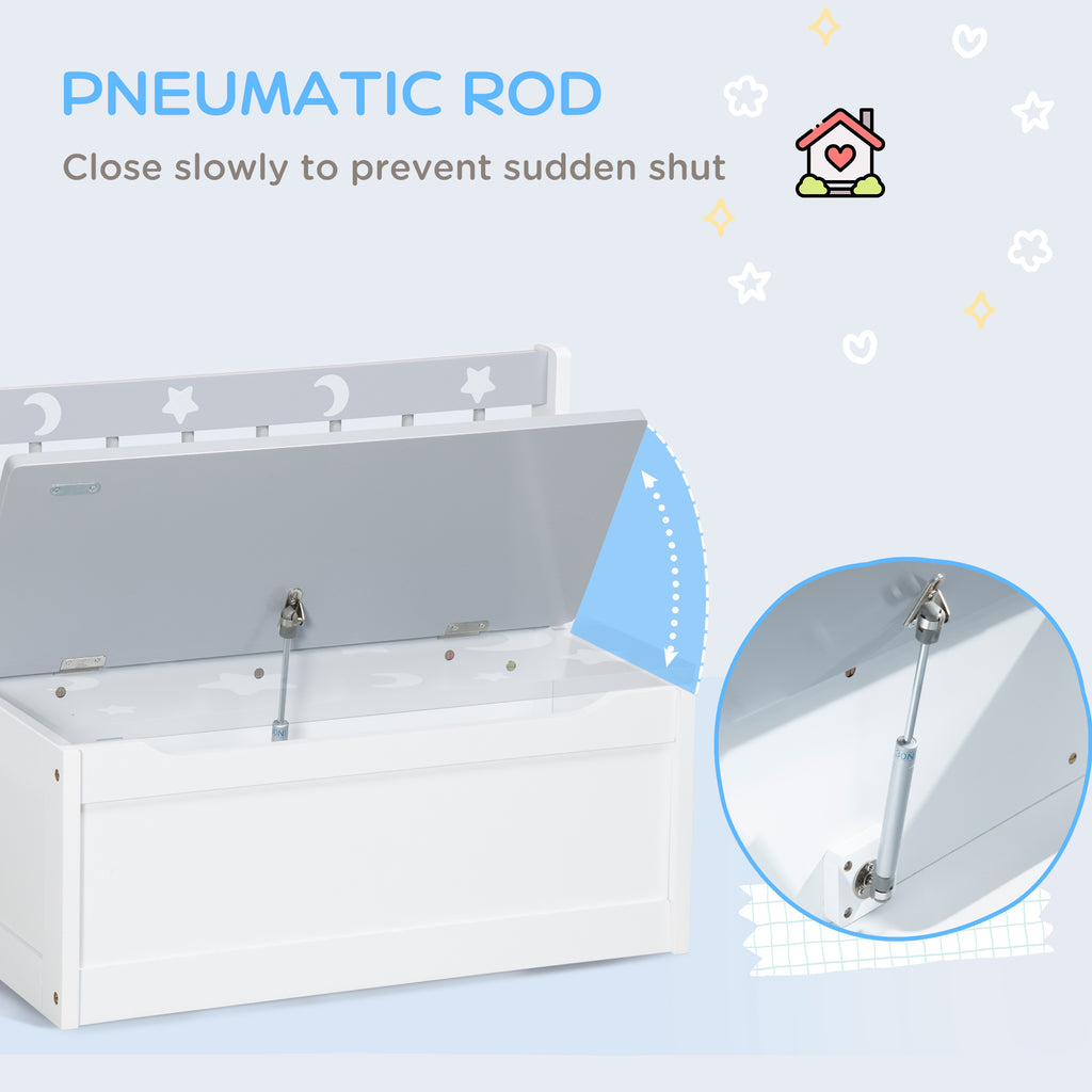 Cassapanca Portagiochi 60x30x50 cm con Leva a Gas in MDF e Legno di Pino Bianco e Grigio