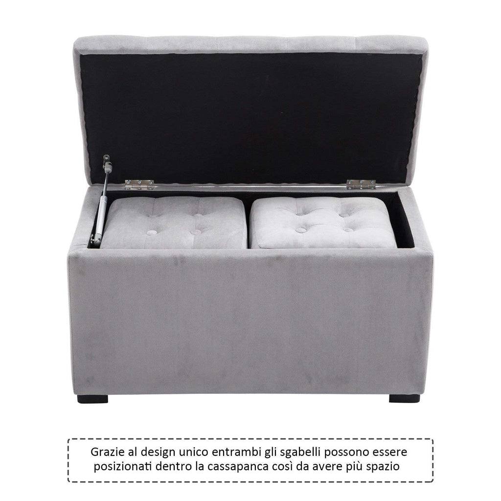 Mehrzweck-Aufbewahrungstruhe mit 2 Puff-Hockern aus perlgrauem Samt