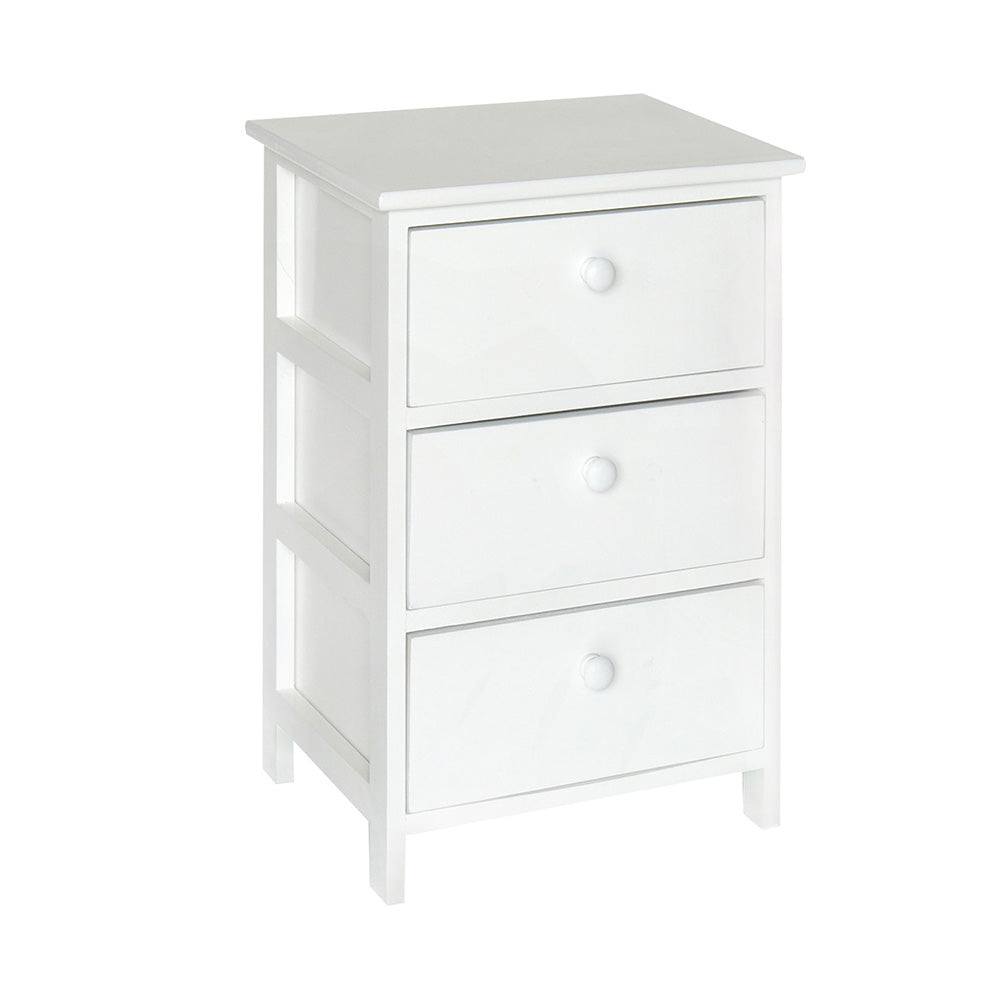 Kommode mit 3 Schubladen - aus mit Wasser bemaltem Paulownia-Holz. Abmessungen (BxHxT): 40 x 58 x 29 cm.Kommode mit 3 Schubladen aus Fadi White Paulownia-Holz