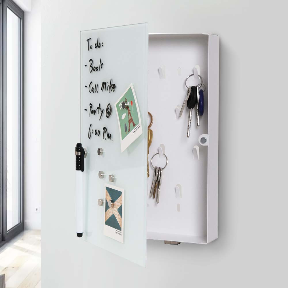 Cassetta Portachiavi con Lavagna Magnetica in Vetro + Magneti e Pennarello
