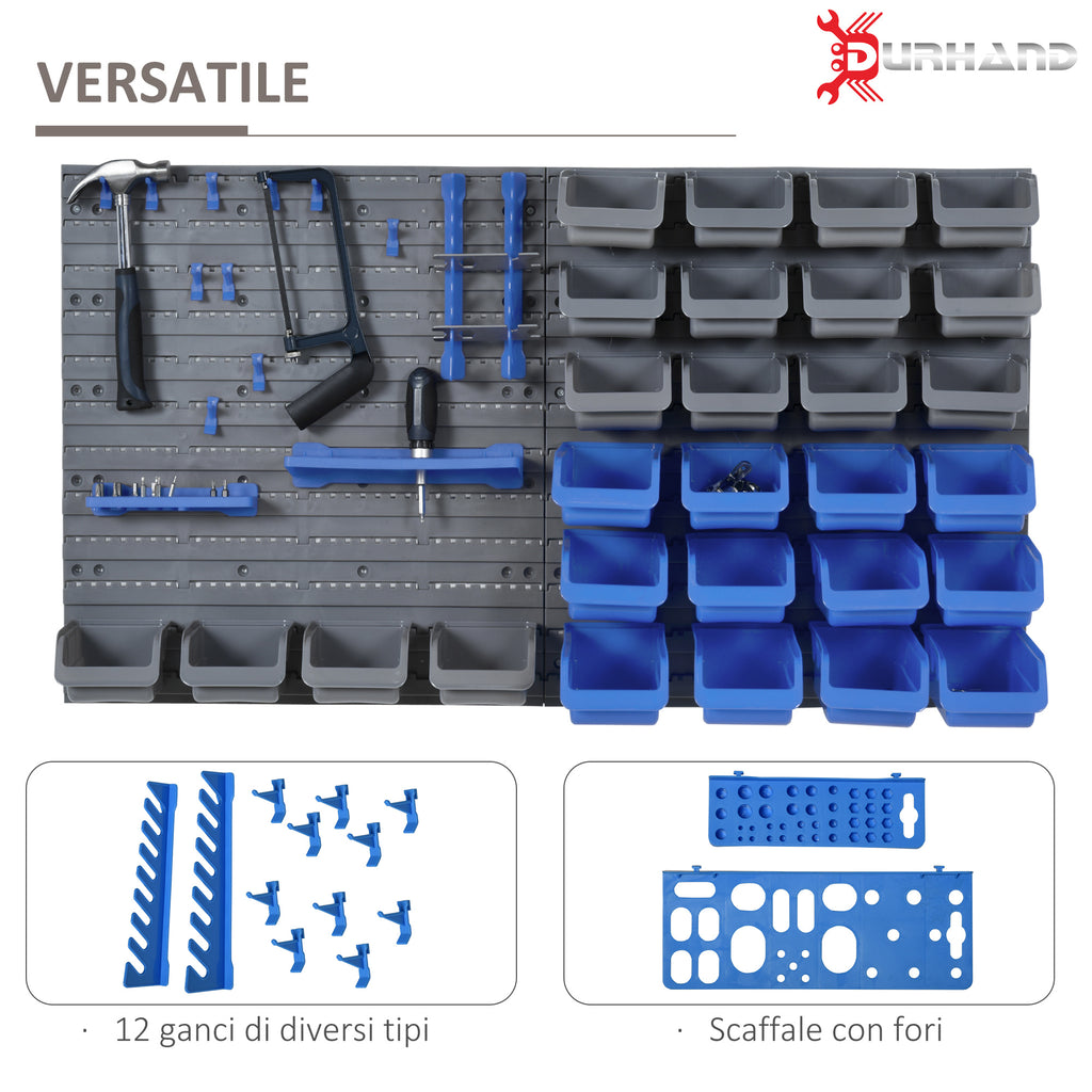 Diese 44-teilige Werkzeugkiste hilft Ihnen, Ihre Werkzeuge organisiert und griffbereit zu halten. Es besteht aus strapazierfähigem PP und hat eine große Tragfähigkeit. Alle Behälter können herausgenommen und beliebig angeordnet werden. Es kann vertikal oder horizontal an der Wand montiert werden und ist perfekt für Räume mit begrenztem Platzangebot. Haken unterschiedlicher Art eignen sich für Werkzeuge und Utensilien wie Schraubendreher, Hämmer, Schrauben, Muttern, Bolzen, Nägel und vieles mehr!