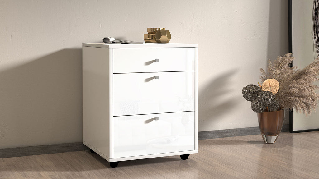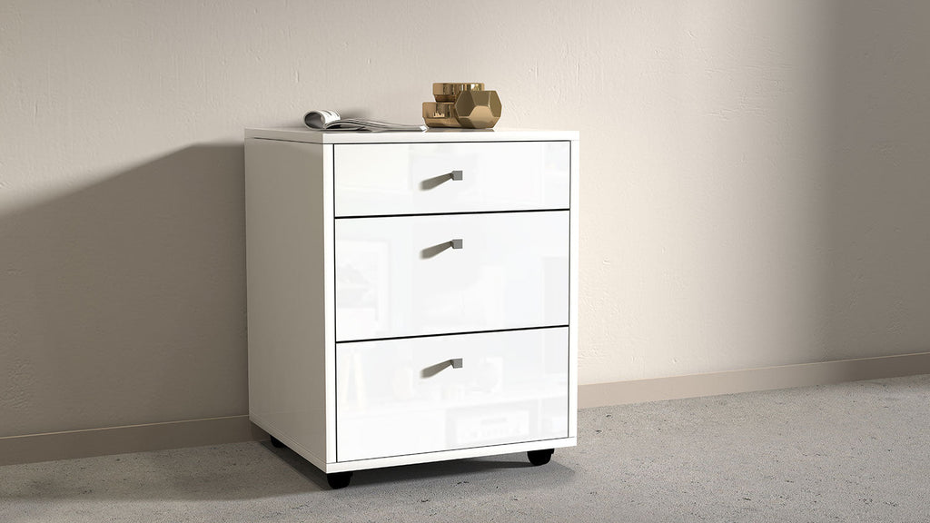 Può essere abbinata a tutte le scrivanie. Tutti i nostri prodotti possono essere forniti con certificato FSC su richiesta. La cassettiera con ruote SELINA è la scelta ideale per migliorare l'organizzazione e l'efficienza dell'ambiente di studio o lavoro. Questa soluzione si presenta come un mobile compatto, progettato per ottimizzare e ordinare i propri spazi, potenziando la produttività. Con un design moderno e italiano, questa cassettiera per scrivania offre una soluzione di archiviazione efficiente. Grazie ai suoi cassetti spaziosi, sarà semplice organizzare documenti, oggetti di cancelleria e tutto il necessario. L'aggiunta di piccole ruote rendono questo complemento d'arredo ancora più versatile, grazie alla possibilità di spostarlo con facilità e adattarlo alle varie esigenze. Disponibile in un'unica finitura, bianco lucido laccato o report, la cassettiera con ruote SELINA va a completare l'ambiente desking e si adatta bene a qualsiasi stile di arredamento.