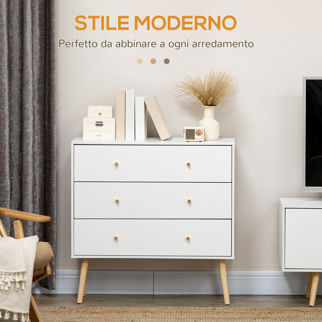 Suchen Sie nach einer Lösung, um Platz in Ihrem Zuhause freizugeben? Eine Möglichkeit, Eleganz und Organisation hinzuzufügen, kann diese neue Kommode sein. Tatsächlich ist es mit 3 Schubladen ausgestattet, um Ihnen viel Platz zu bieten, der für die Aufbewahrung von Kleidung und Gegenständen unerlässlich ist. Alle Schubladen haben Griffe zum einfachen Öffnen und Schließen. Aus Holz gefertigt und mit Beinen aus Kiefernholz erweist sich diese Kommode als langlebig für den langfristigen Gebrauch.