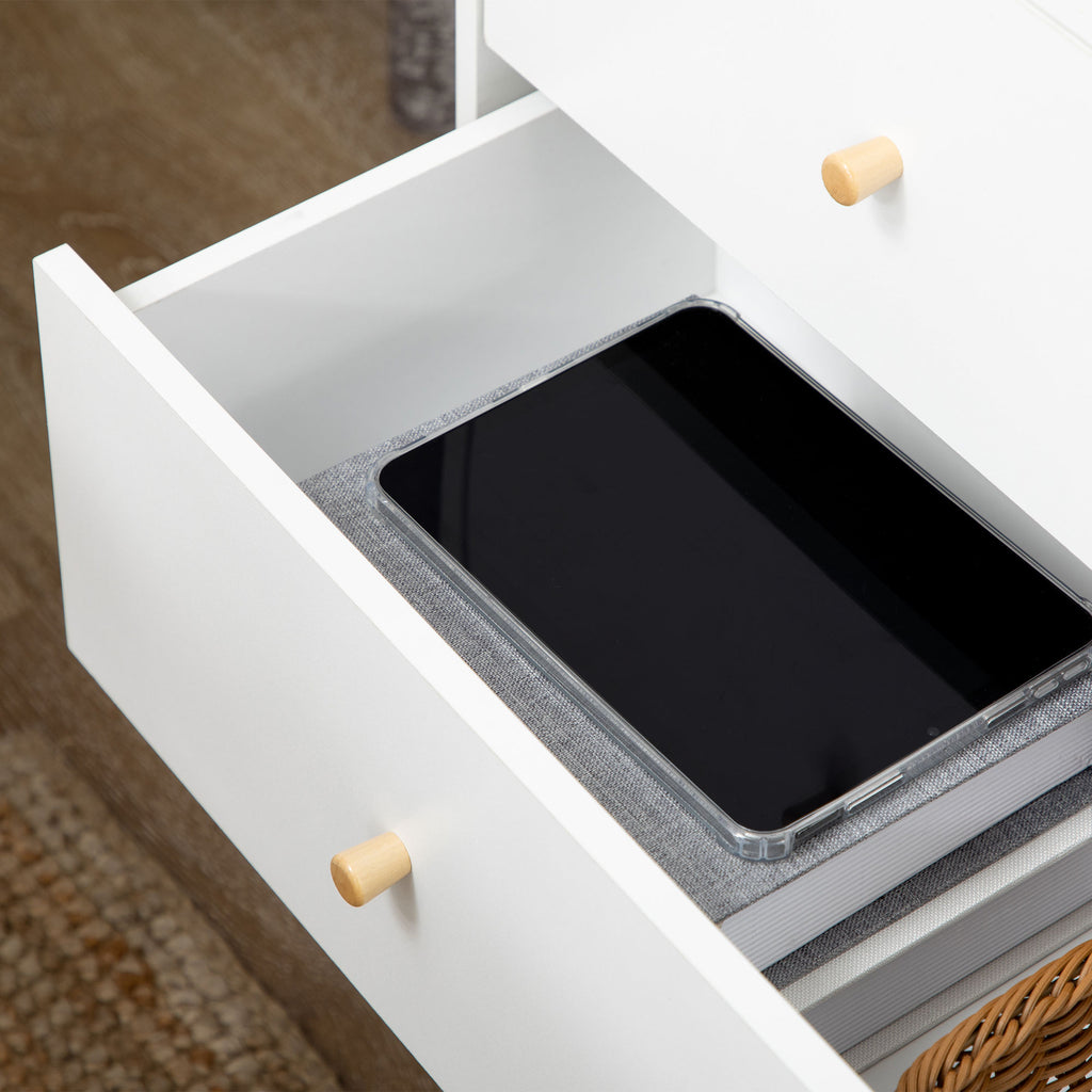 - PRAKTISCHES DESIGN: Der erhöhte Boden erleichtert die Reinigungs- und Wartungsarbeiten erheblich. Die versenkbaren Griffe der Holzkommode erleichtern das Öffnen und Schließen der Schubladen