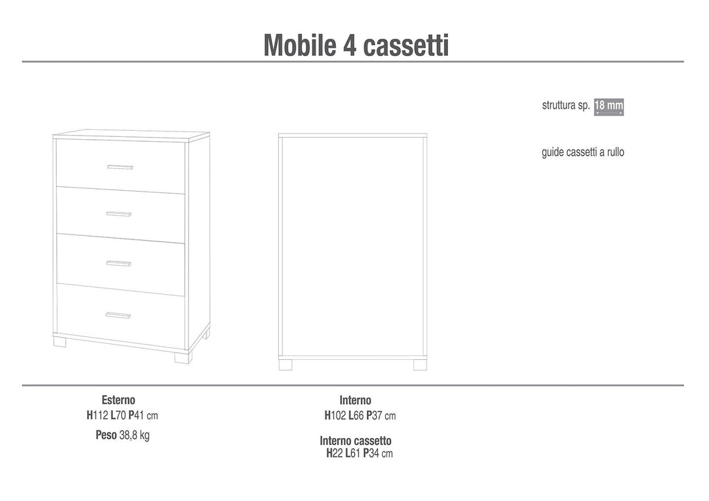Cassettiera 4 Cassetti 70x112x41 cm Noce Stelvio