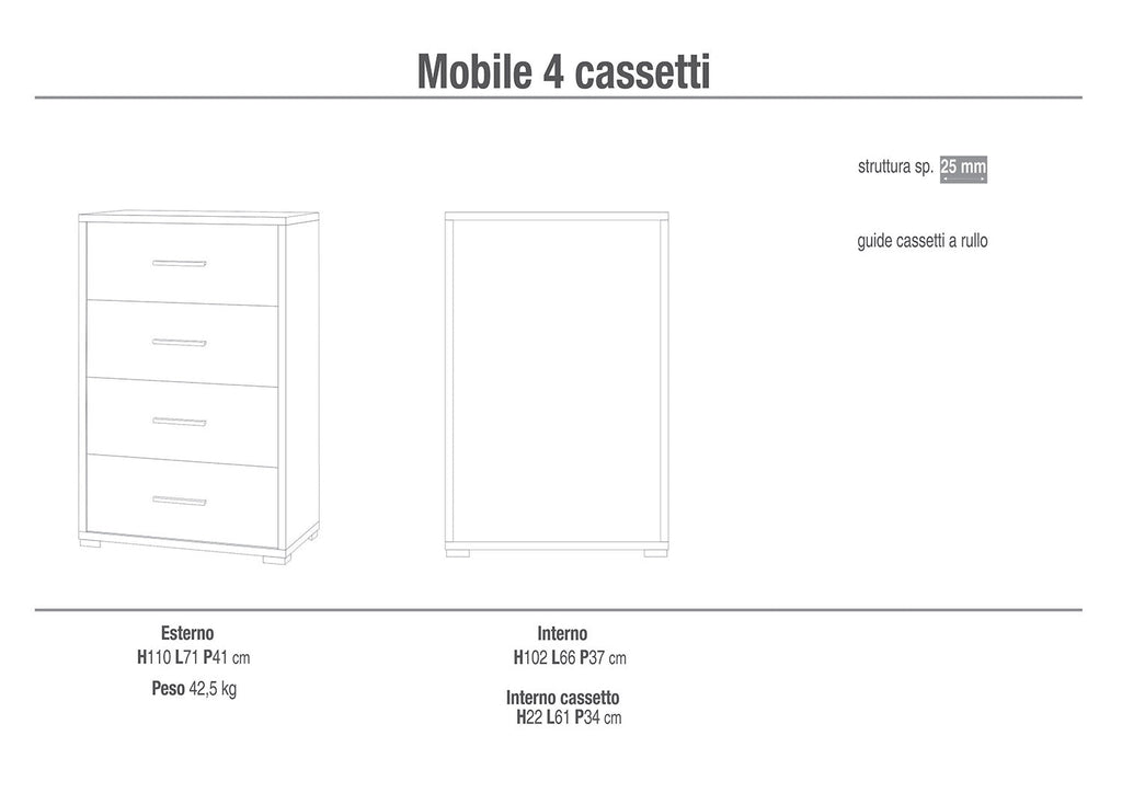 Cassettiera 4 Cassetti 71x110x41 cm Ossido Bianco/Ossido Nero