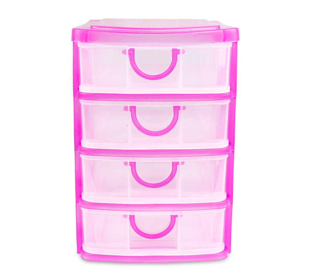 Kommode 4 Etagen 13x17x18 cm Fuchsiafarbener Hartplastik
