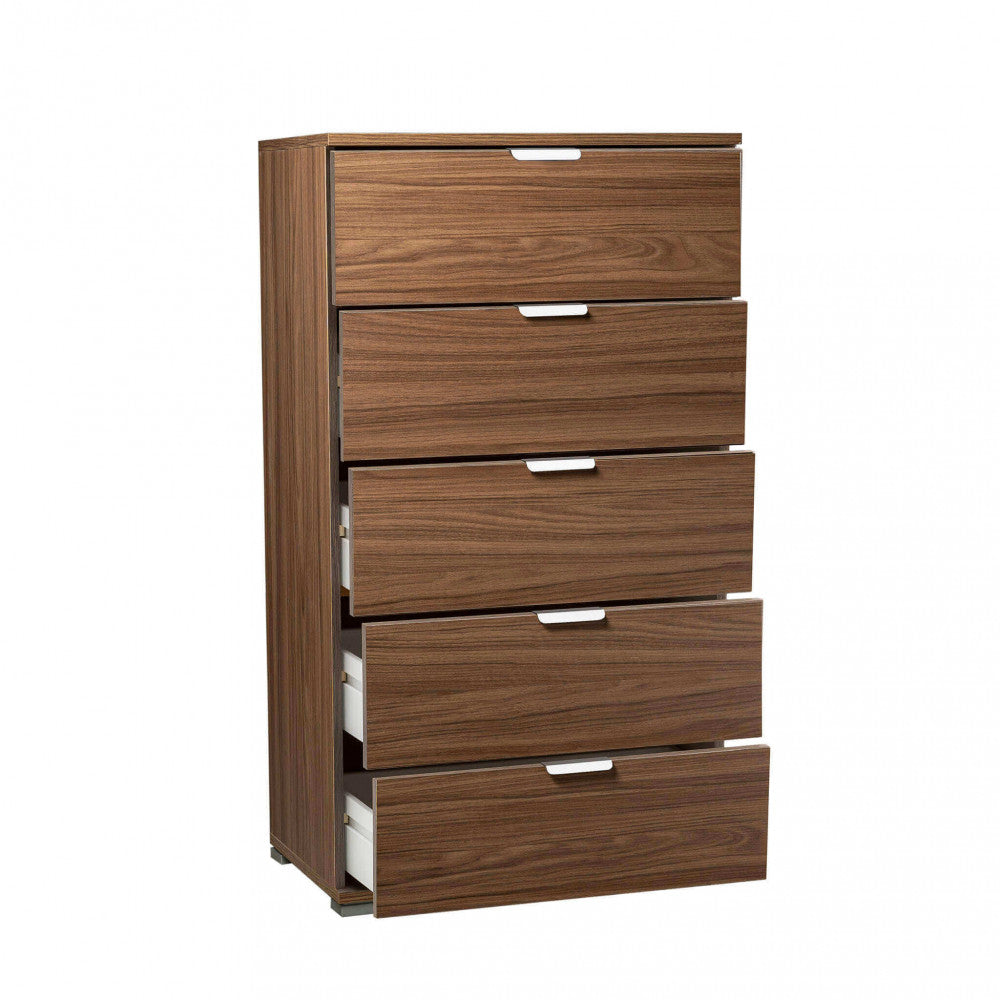 Kommode mit 5 Schubladen Nussbaumfarbe 60x38x103 h cm in brauner zweischichtiger Spanplatte