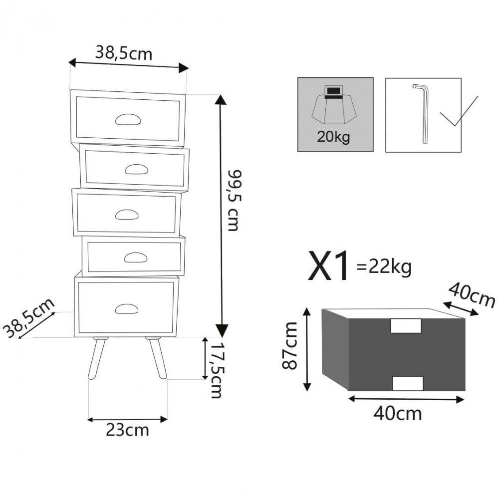 Colorado Kommode 40x36,5x99 h cm in Multicolor Wood