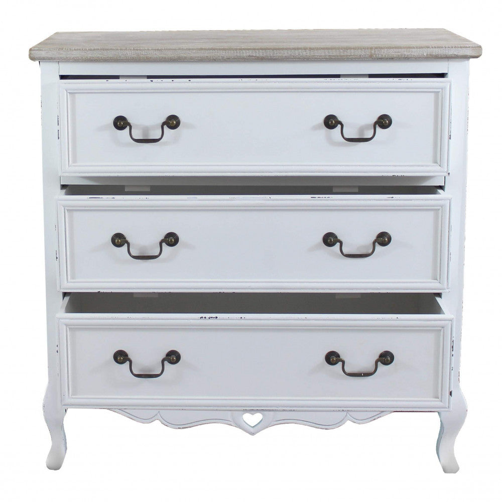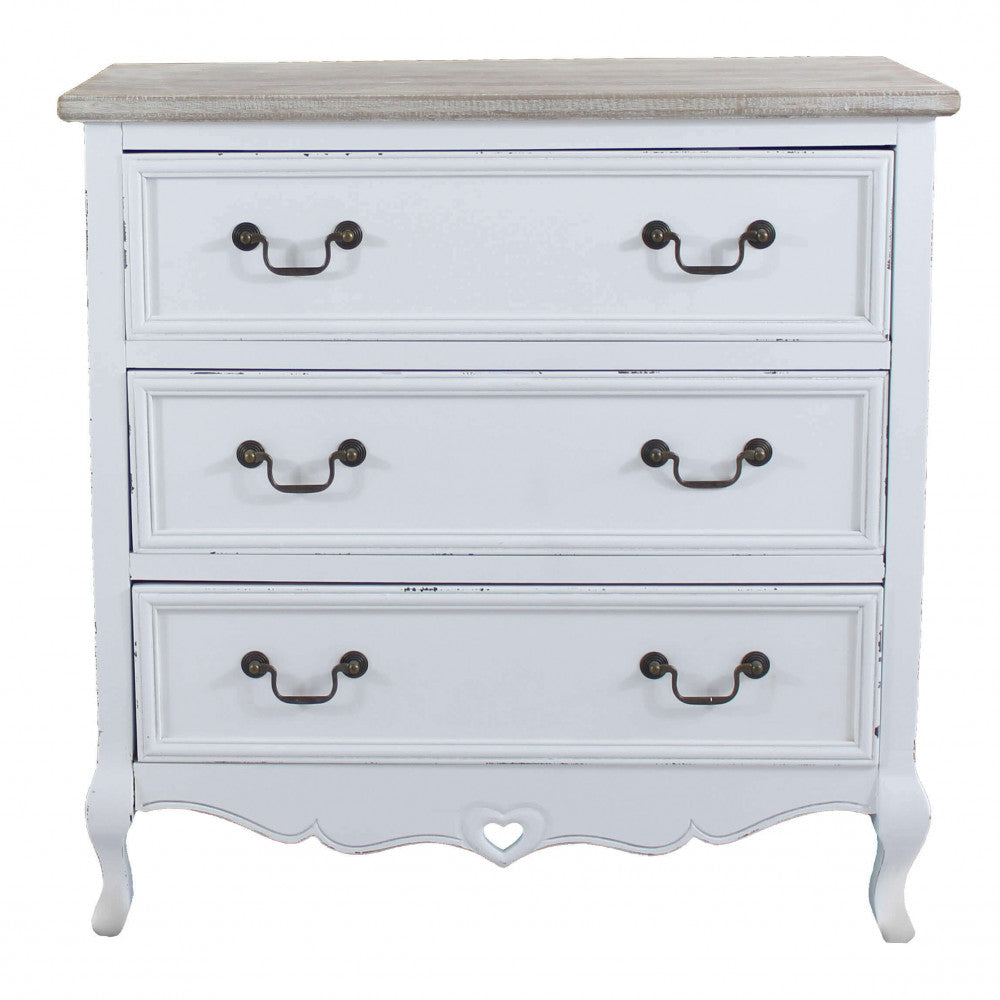 Kommode Herz 3 Schubladen 80x38x80 h cm aus weißem Paulownia-Holz