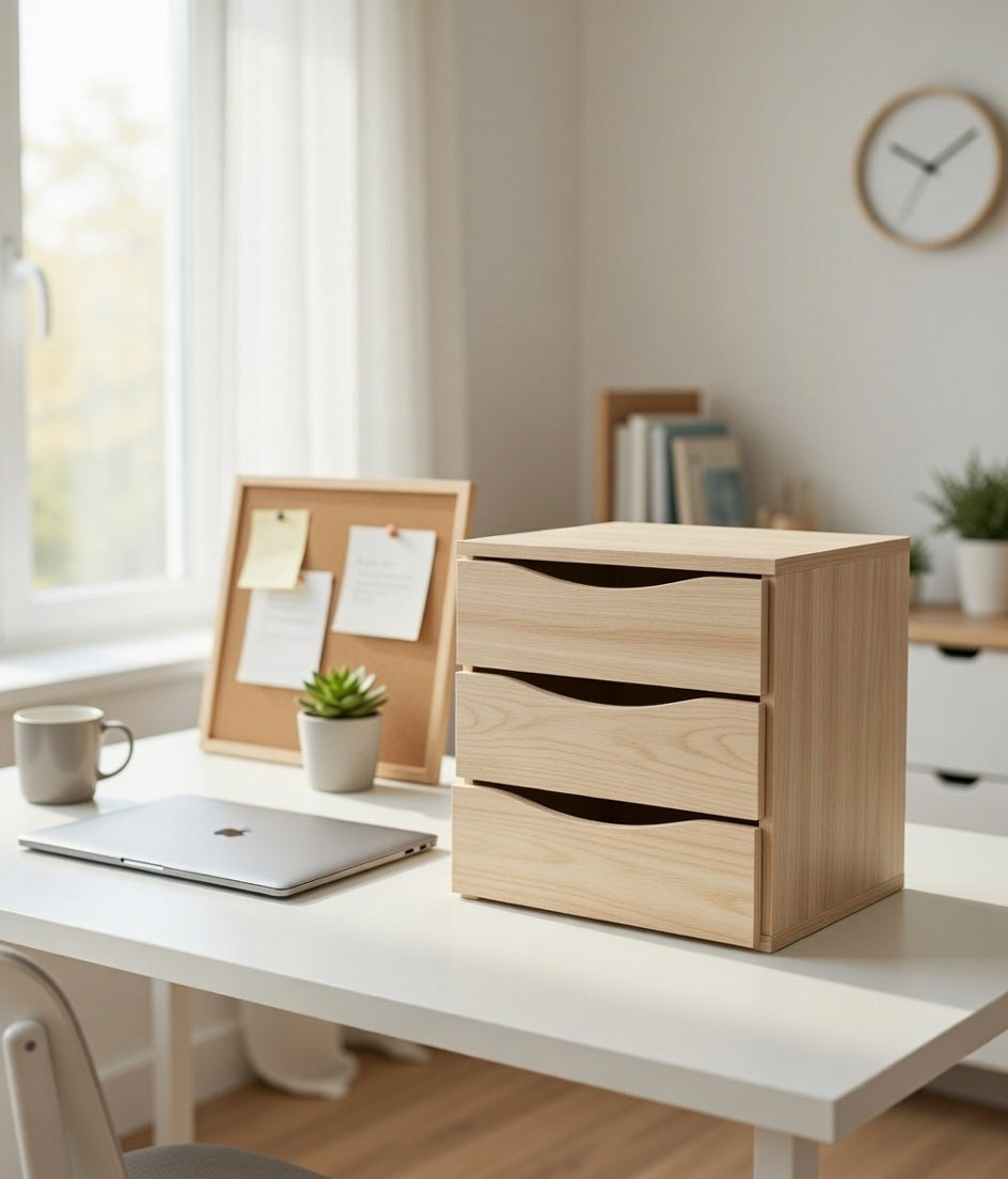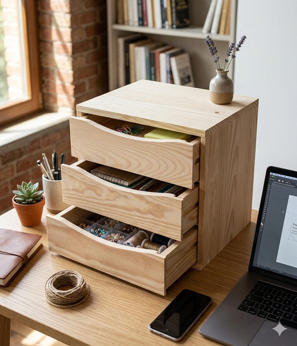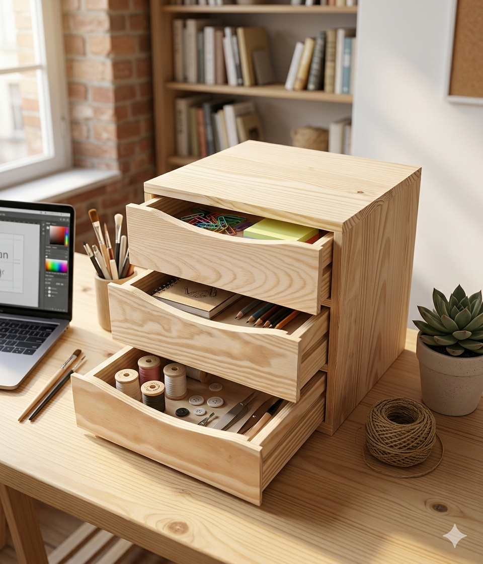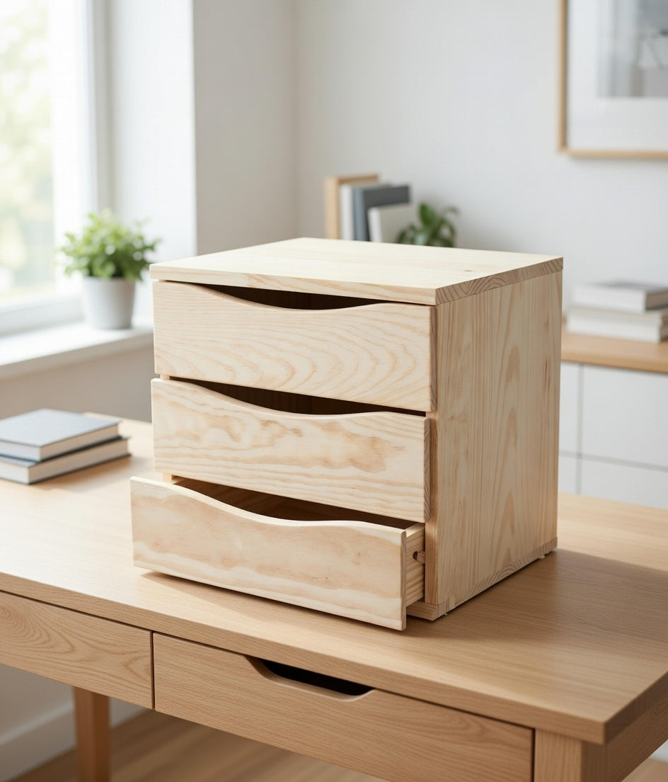 Cassettiera da Tavolo 3 cassetti 36x30x36 cm in Legno di Pino Massiccio Grezzo