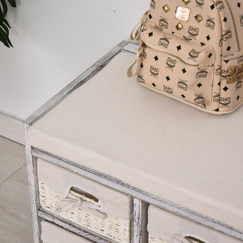 Kommode aus Holz 80 x 37 x 45 cm mit 5 beige Korbschubladen