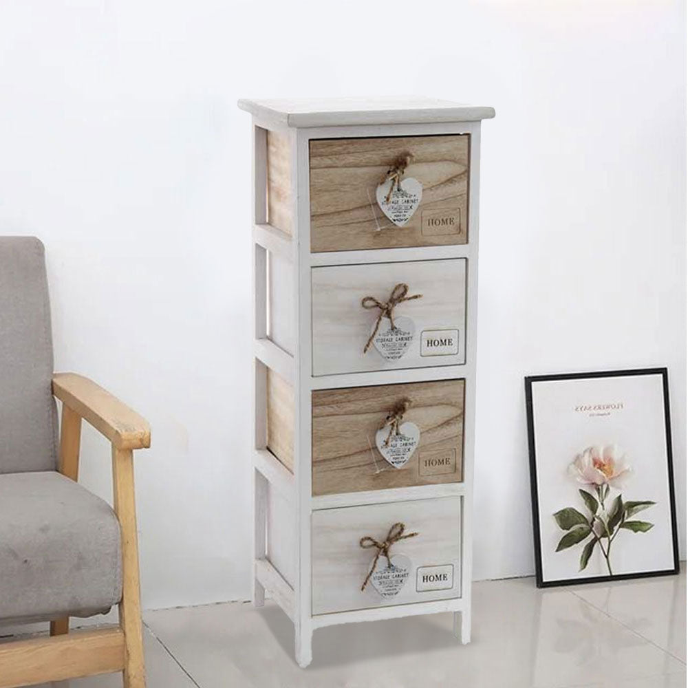 Cassettiera Mobile Salvaspazio 4 Cassetti Legno Slim Decoro Retro Design Cuori