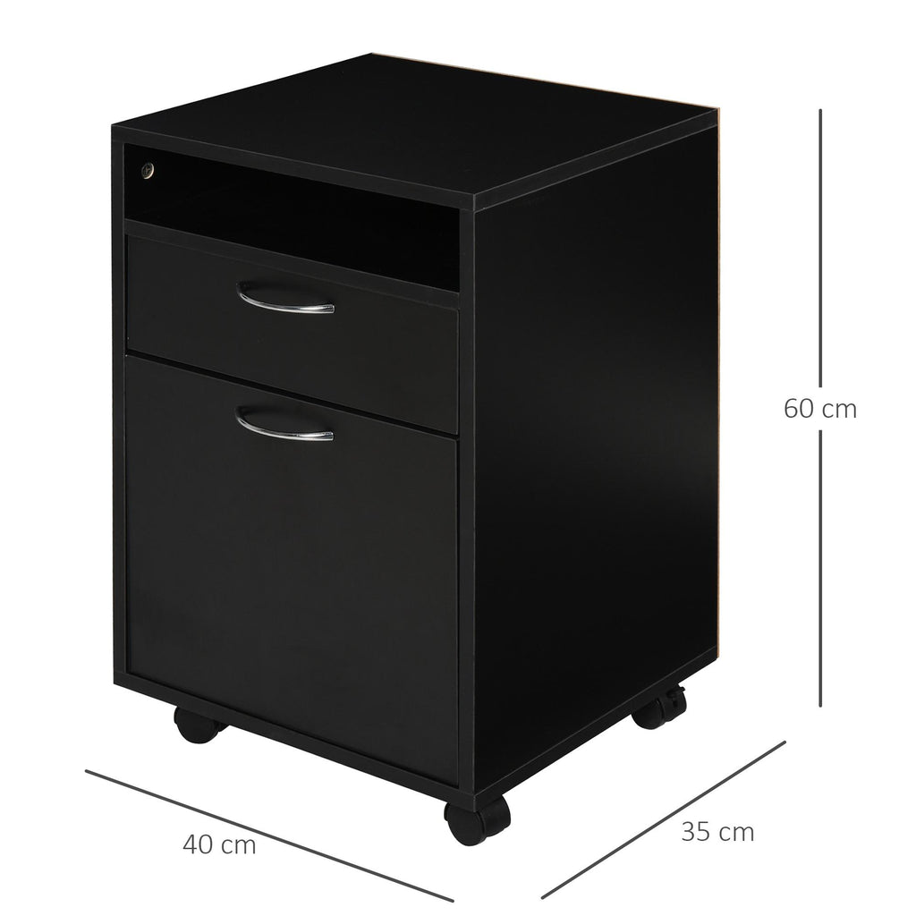 Bürokommode mit 2 Schubladen und Rädern 40 x 35 x 60 cm in schwarzem Holz