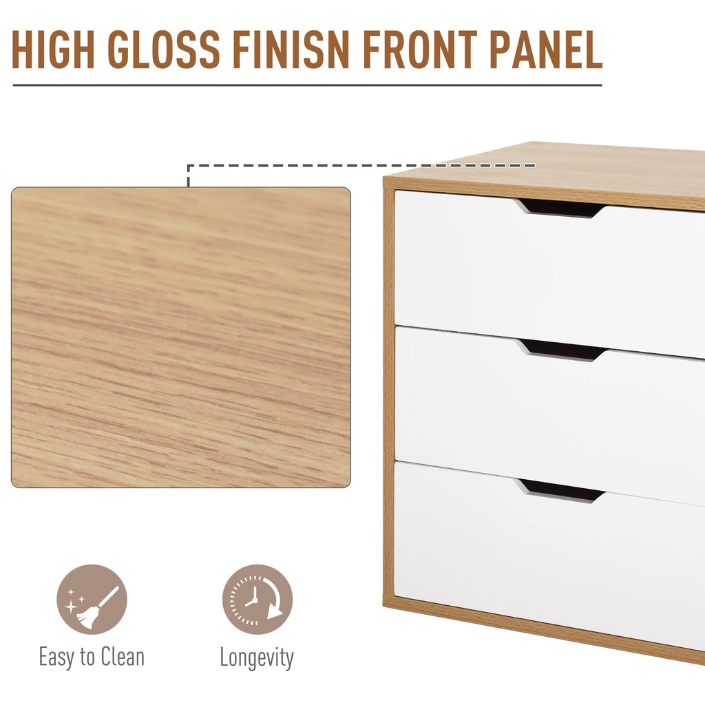 Es ist Zeit, Ihren Räumen einen Sprint zu geben! Mit der Kommode bringen Sie einen Hauch von Stil in jeden Raum und eine praktische Lösung, um Ordnung zu halten. Die Kommode hat ein Design mit kontrastierenden Farben, mit einer holzfarbenen Struktur und Schubladen mit glänzender Oberfläche, die in der Lage sind, jeder Umgebung einen Hauch von einzigartigem Stil zu verleihen. Die 3 Schubladen bieten viel Platz, um alles zu organisieren, was Sie brauchen. Es ist eine vielseitige Lösung, die für jeden Raum im Büro und zu Hause geeignet ist.