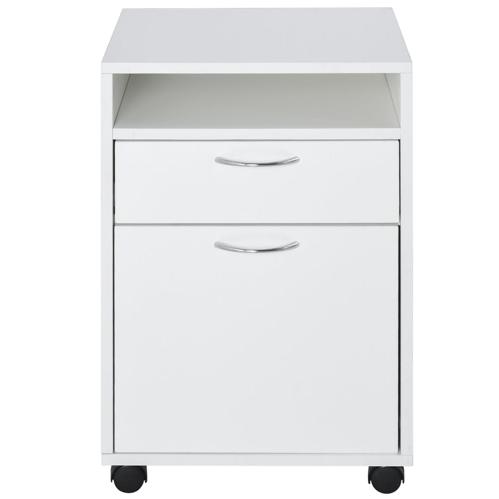 Aktenschrank aus Holz mit 2 Schubladen und Rädern Weiß 40x35x60 cm