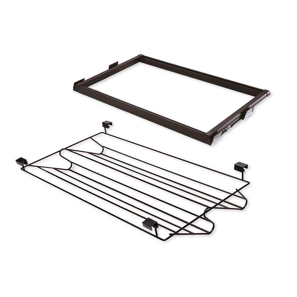 - Kit bestehend aus einer 675 mm breiten Schuhschublade und einem Rahmen mit verstellbaren Breitenführungen.