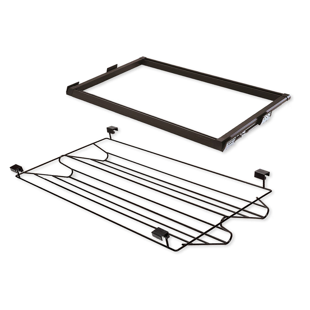 - Kit bestehend aus einer 775 mm breiten Schuhschublade und einem Rahmen mit verstellbaren Breitenführungen.