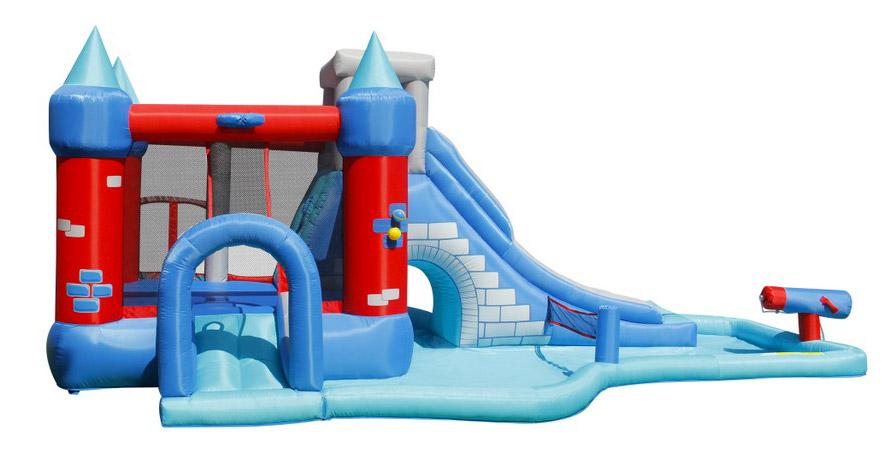 Zweite Wet&Dry-Neuheit, die zur Familie der Wasserschlösser gehört, die mit den speziellen Schiebebezügen auch trocken verwendet werden können. Der Splash Park, ein Wasserpark, der an die Magie mittelalterlicher Burgen erinnert, besteht aus 2 Rutschen (eine kleine mit Sonnendach und eine größere und größere), einem großen Schwimmbecken, einer Wasserkanone, einem Tunnel, einem Volleyballnetz , und wenn Sie ohne Wasser verwenden möchten, wird der Pool zu einem großen Bällebad!