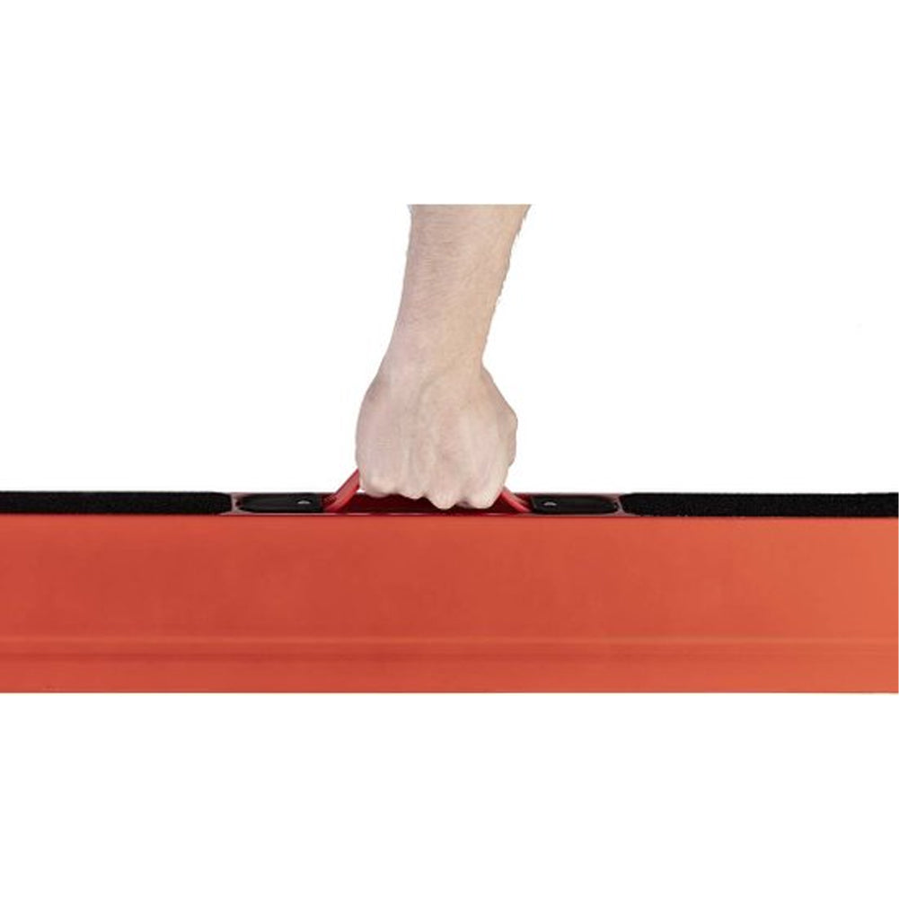 Il cavalletto pieghevole ha due perni di appoggio su entrambi i lati che consentono di stoccare i materiali in posizione verticale.