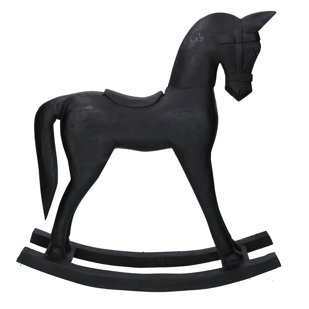 Dekoratives Schaukelpferd aus schwarzem Holz cm 46x9xh50