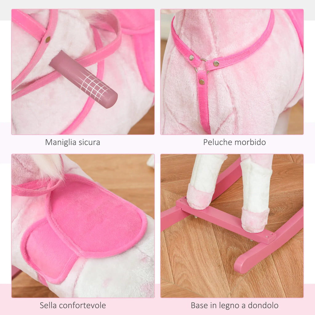 Dieses Schaukelpferd aus weichem Plüsch mit Mähne und Schweif ist ideal, um Ihre Kleinen zu unterhalten.